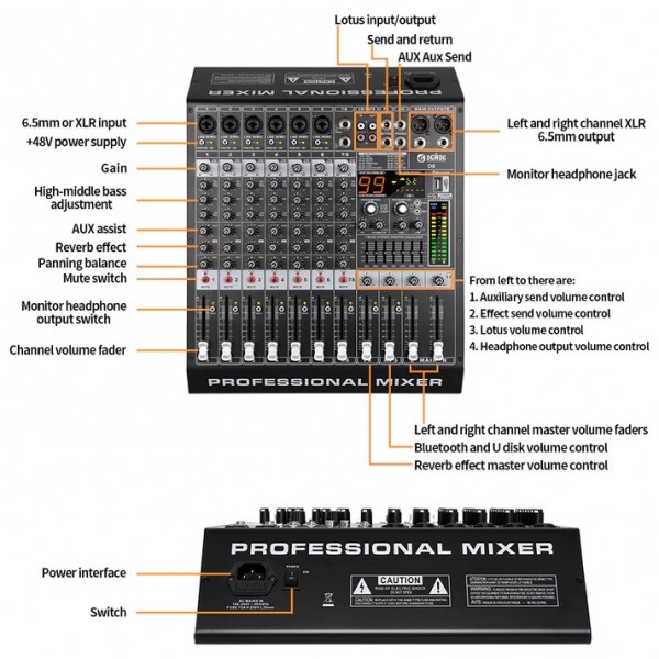 Каждый канал может управляться индивидуально, фантомное питание +48 В